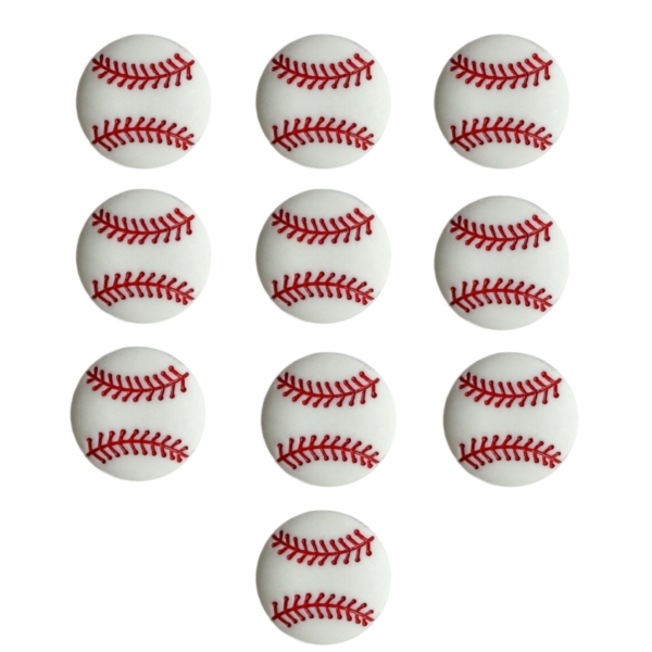 Add a sporty pop to your next crafting project with these red stitched baseball themed buttons by Shelly’s Buttons and More! Featuring raised baseball stitching details, these sewing buttons are perfect for adding athletic flair to clothing, bags, picture frames, sports jewelry, and more. With their classic 5/8″ size and convenient shank backs for easy attachment, these craft buttons make it a breeze to incorporate your love of the great American pastime into handmade decor and accessories. Grab a pack of 10 and take your baseball button game to the next level!