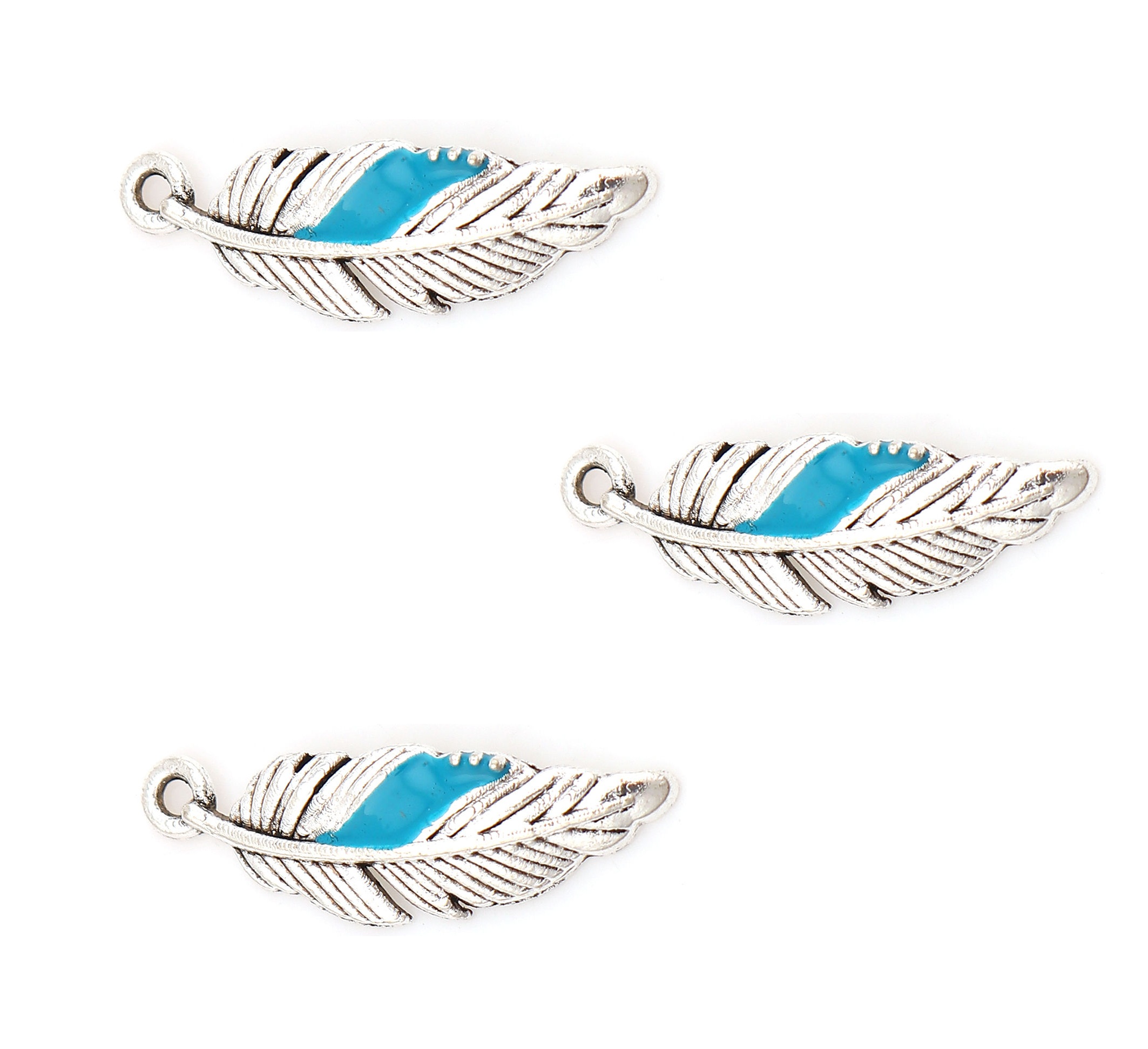 turquoise feather embellishment -Bring a boho vibe to your creations with Feather Charms! Featuring silver-tone metal with turquoise enamel accents, these charms are perfect for jewelry making, scrapbooking, and DIY crafts. Lightweight and easy to use, they add a free-spirited touch to any project