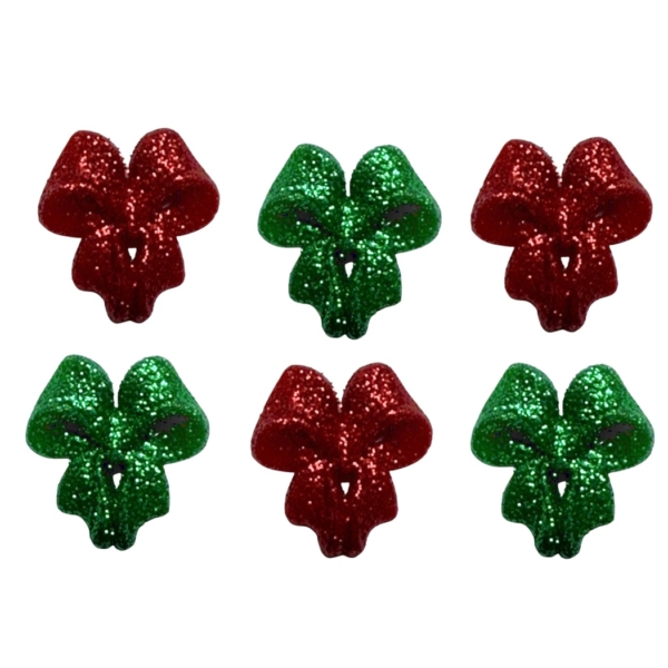 Get crafty this Christmas with our glitter bow buttons in bright red and green hues. These 7/8″ buttons make the perfect embellishment for holiday craft projects galore. Whether you’re decorating ornaments, stringing garlands or decking out a wreath, these glitter buttons are sure to add a festive touch of sparkle.