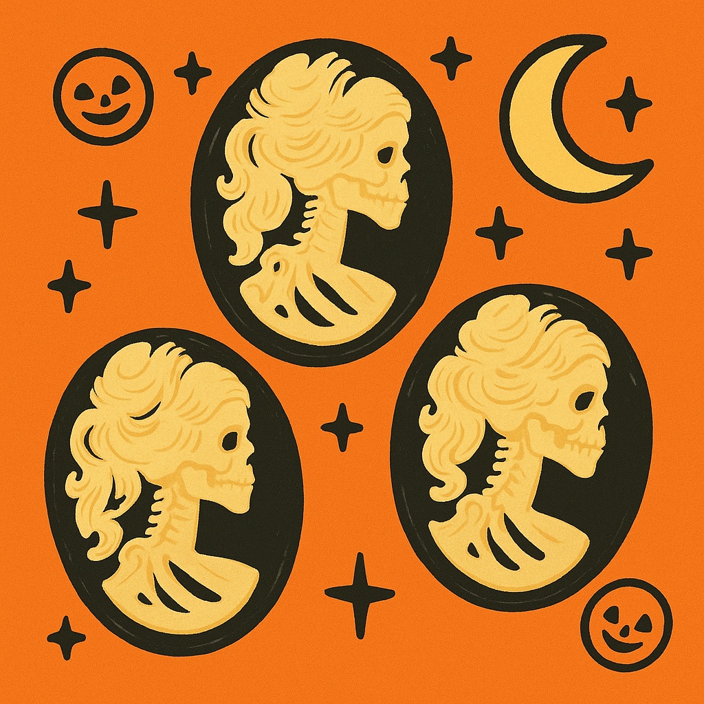Halloween Cameo Embellishment Set – Bring a spooky Victorian vibe to your crafts with the Halloween Cameo Embellishment Set! Featuring skeleton lady silhouettes in elegant black-and-ivory cameos, these embellishments are perfect for jewelry, scrapbooking, décor, and Halloween DIY projects.