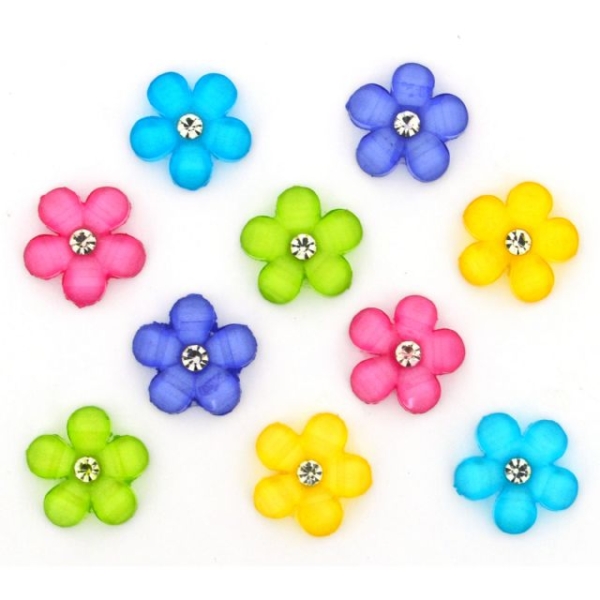 Poppin Posies Rhinestone Center Petals– Five petal rhinestone flowers with a clear rhinestone in the center.