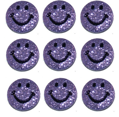 Purple Glitter Smiley Face Buttons — 10 pieces