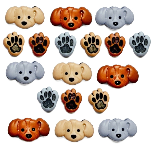 • Set includes: Puppy face and paw print buttons in assorted colors