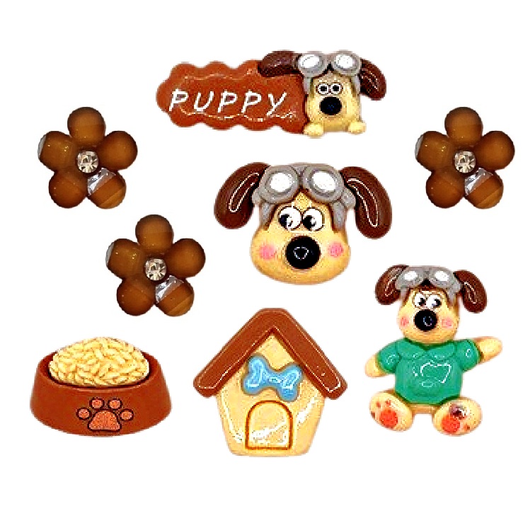 Woof Woof Dog Theme Embellishment Set – Detailed, 3D flatback embellishments.